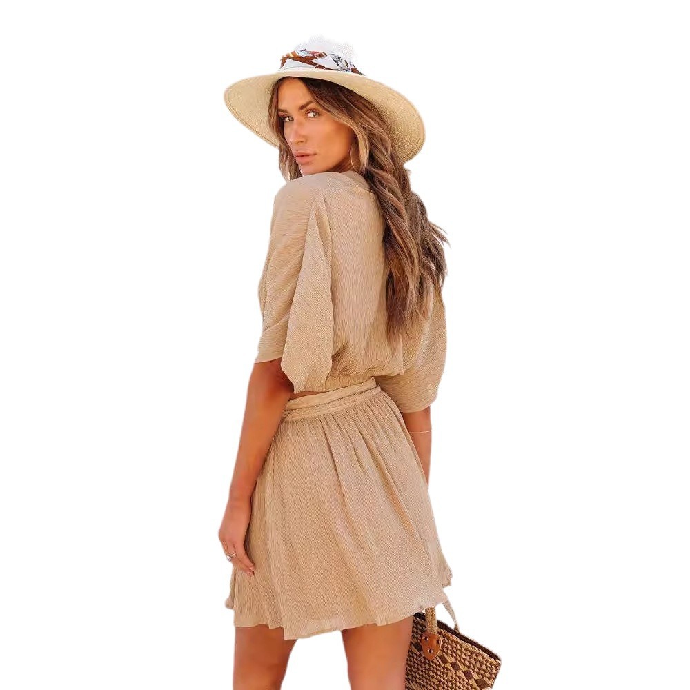 Pleated Lace-up Fashion Casual Skirt Outfit