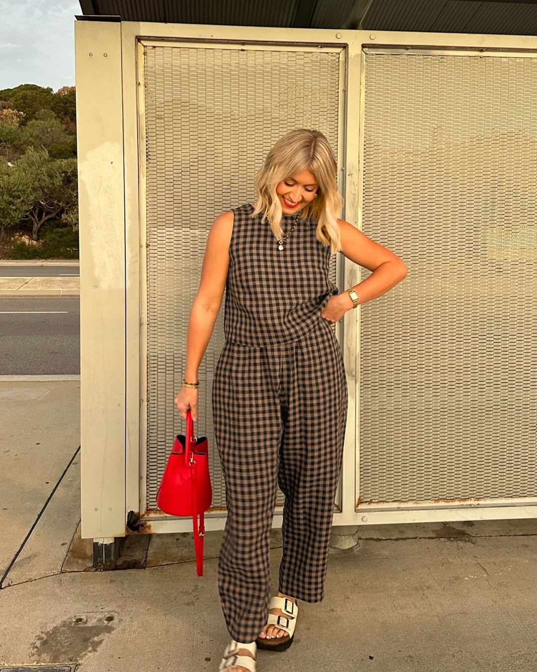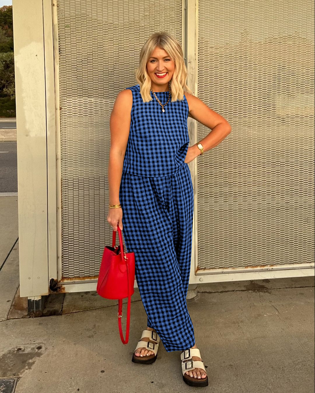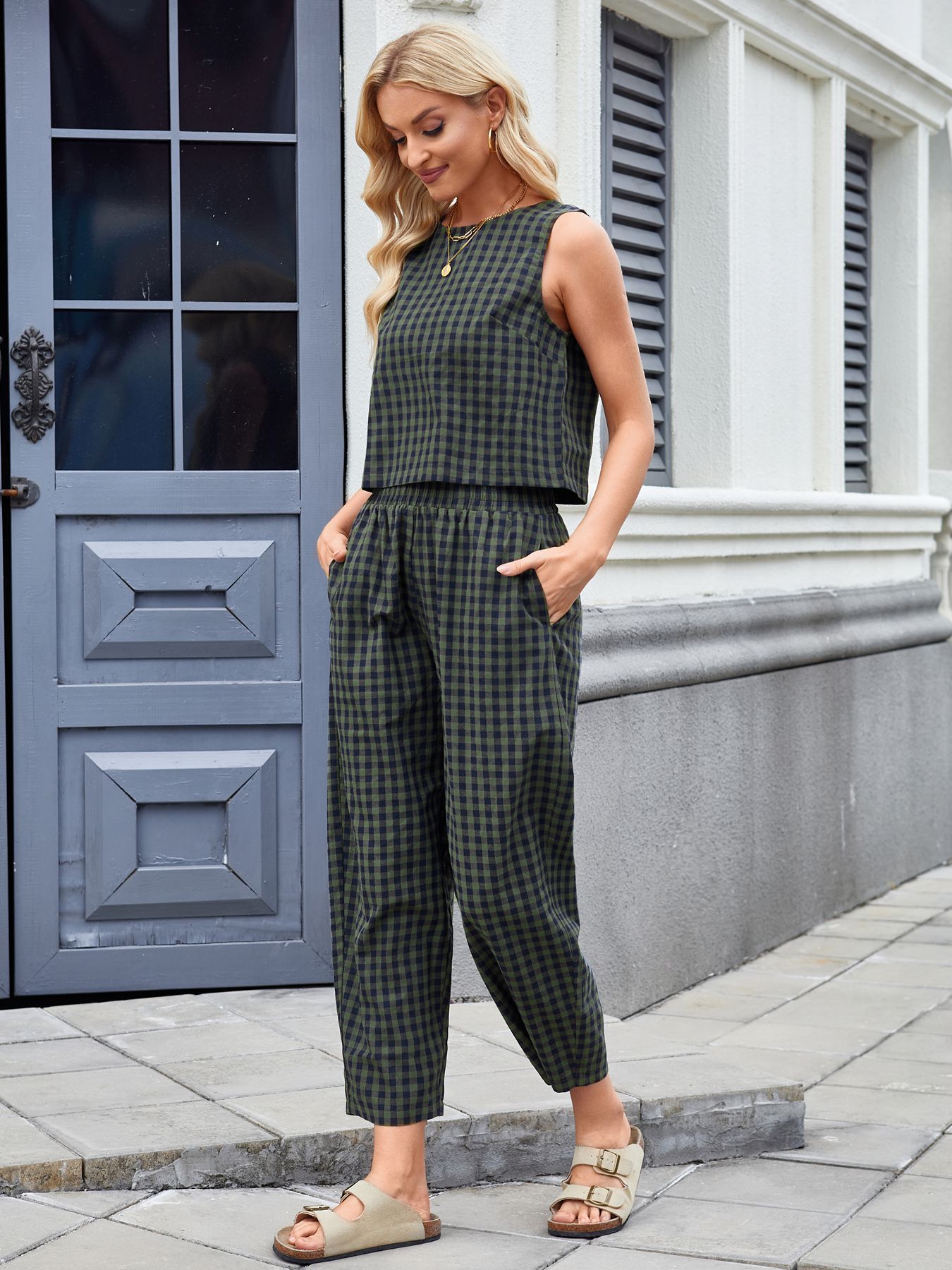 Printed Plaid Loose Casual Sleeveless Vest Trousers Set
