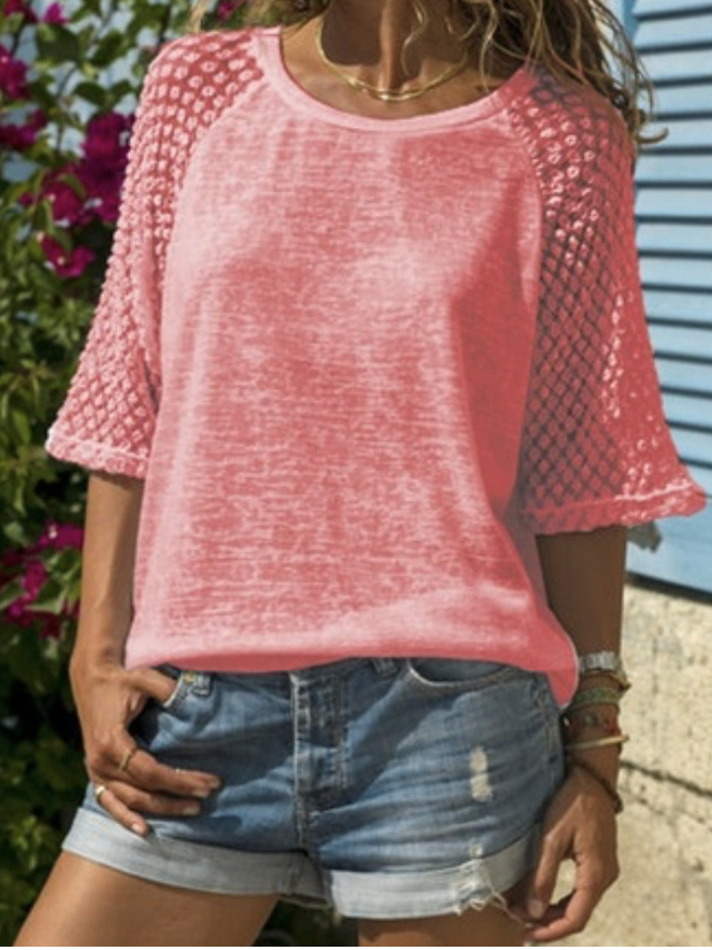 Lace Patchwork round Neck T-shirt