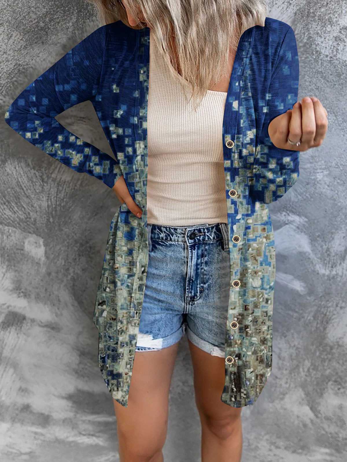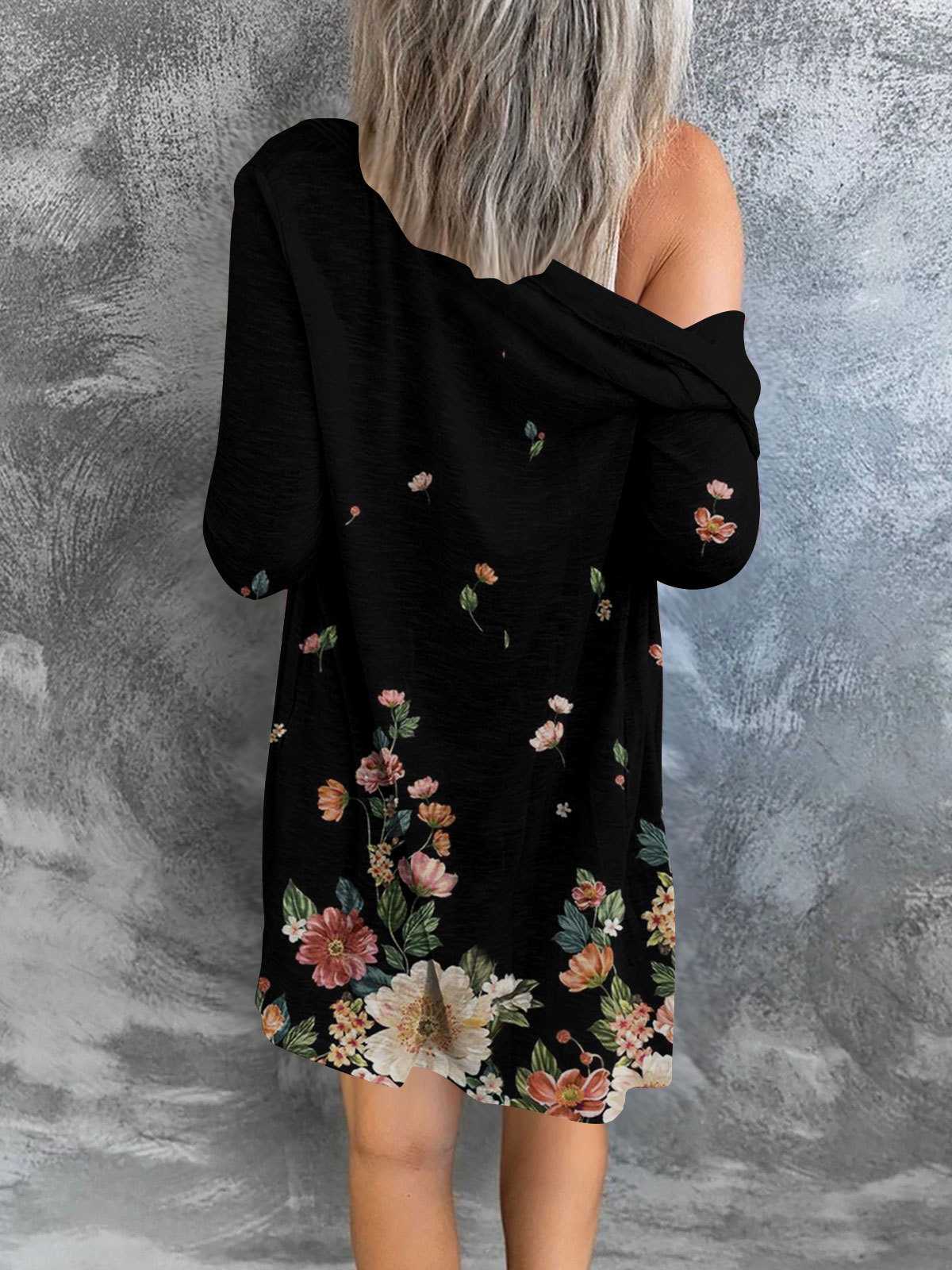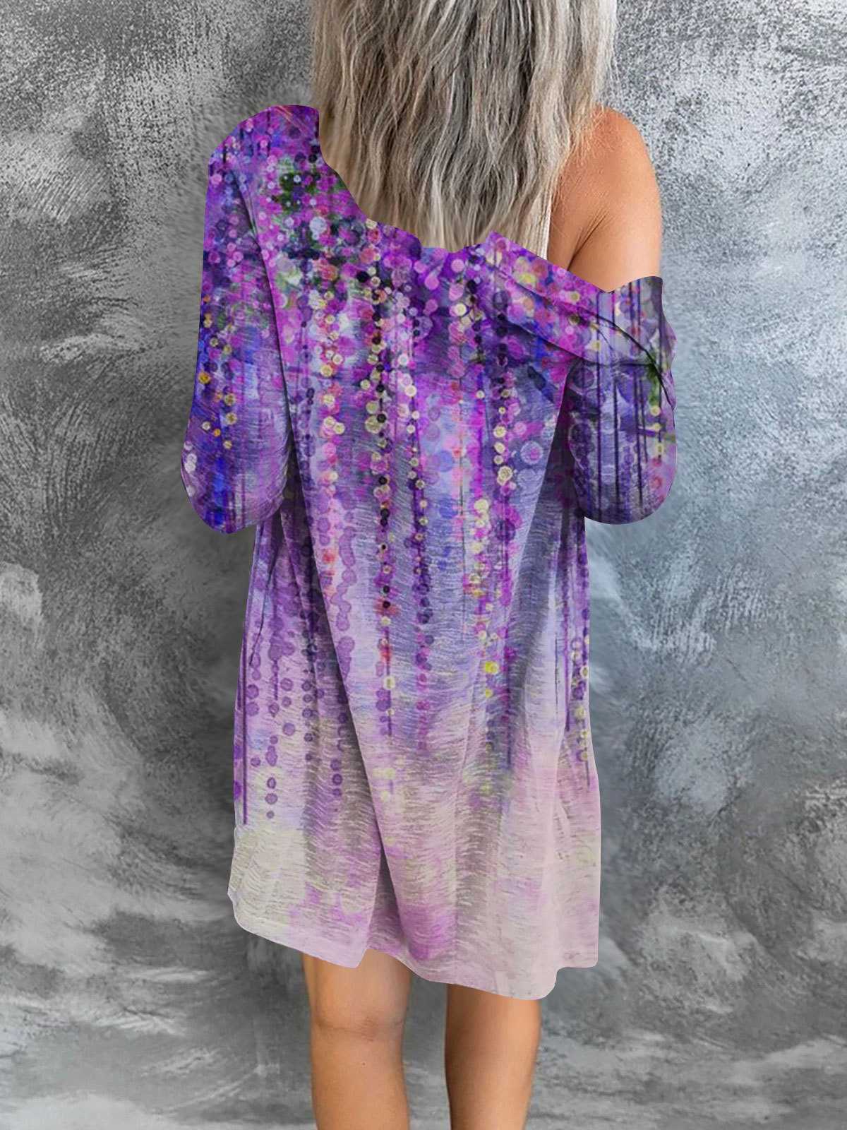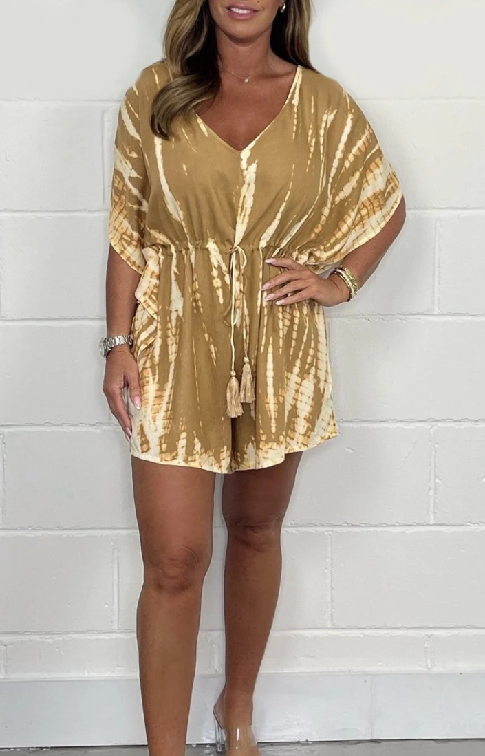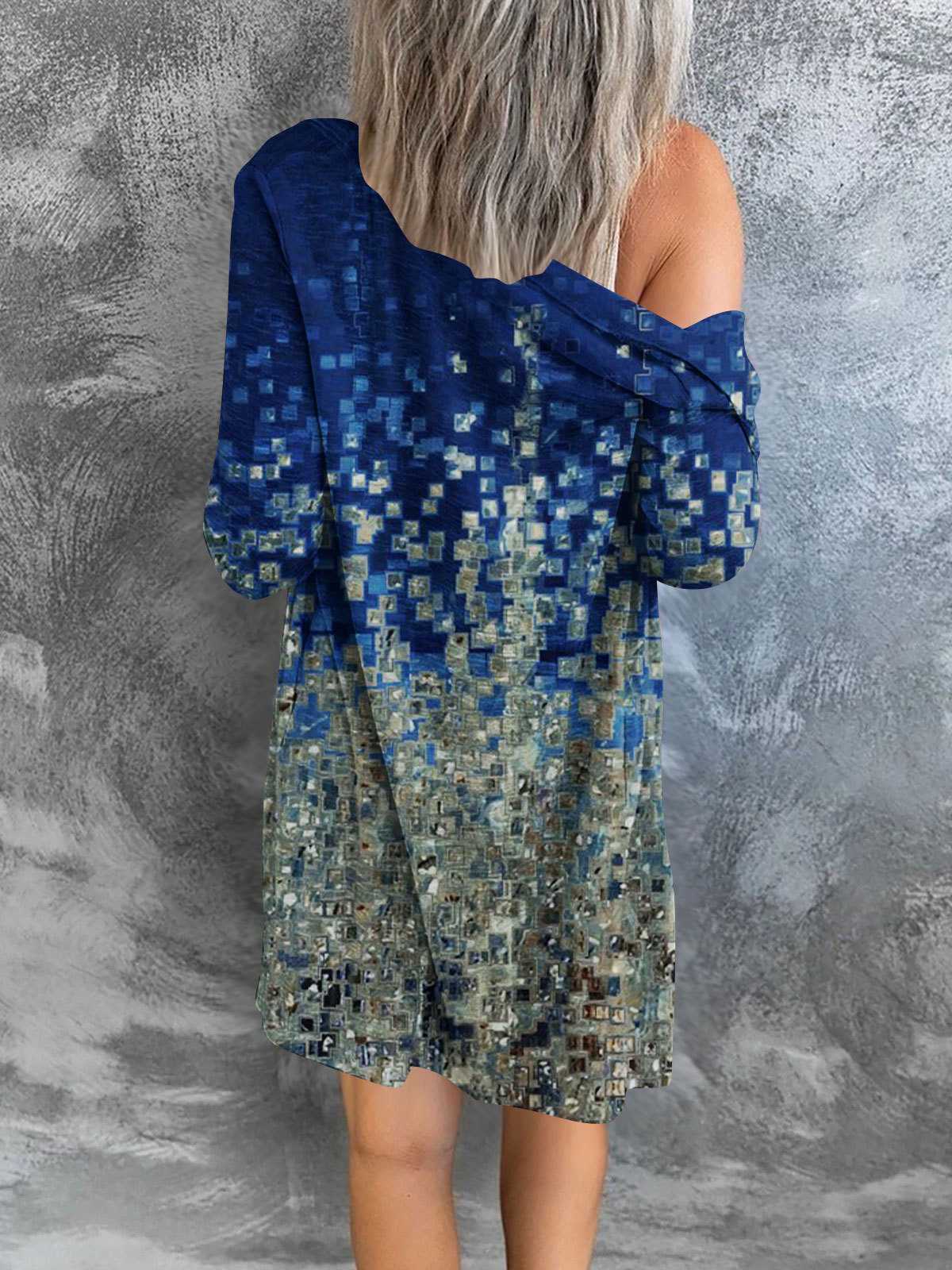 V Tie Diamond Printed Bat Sleeve Loose Dress