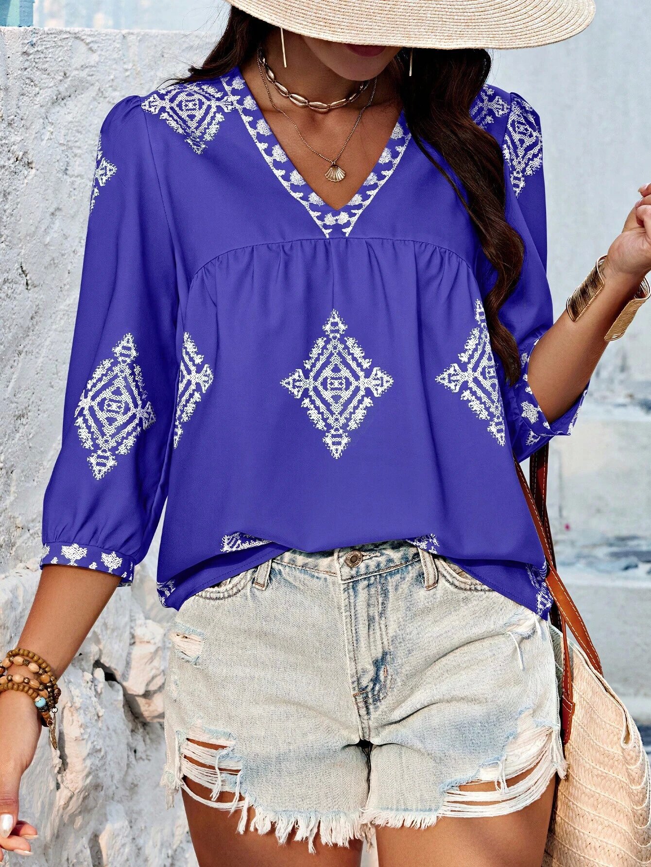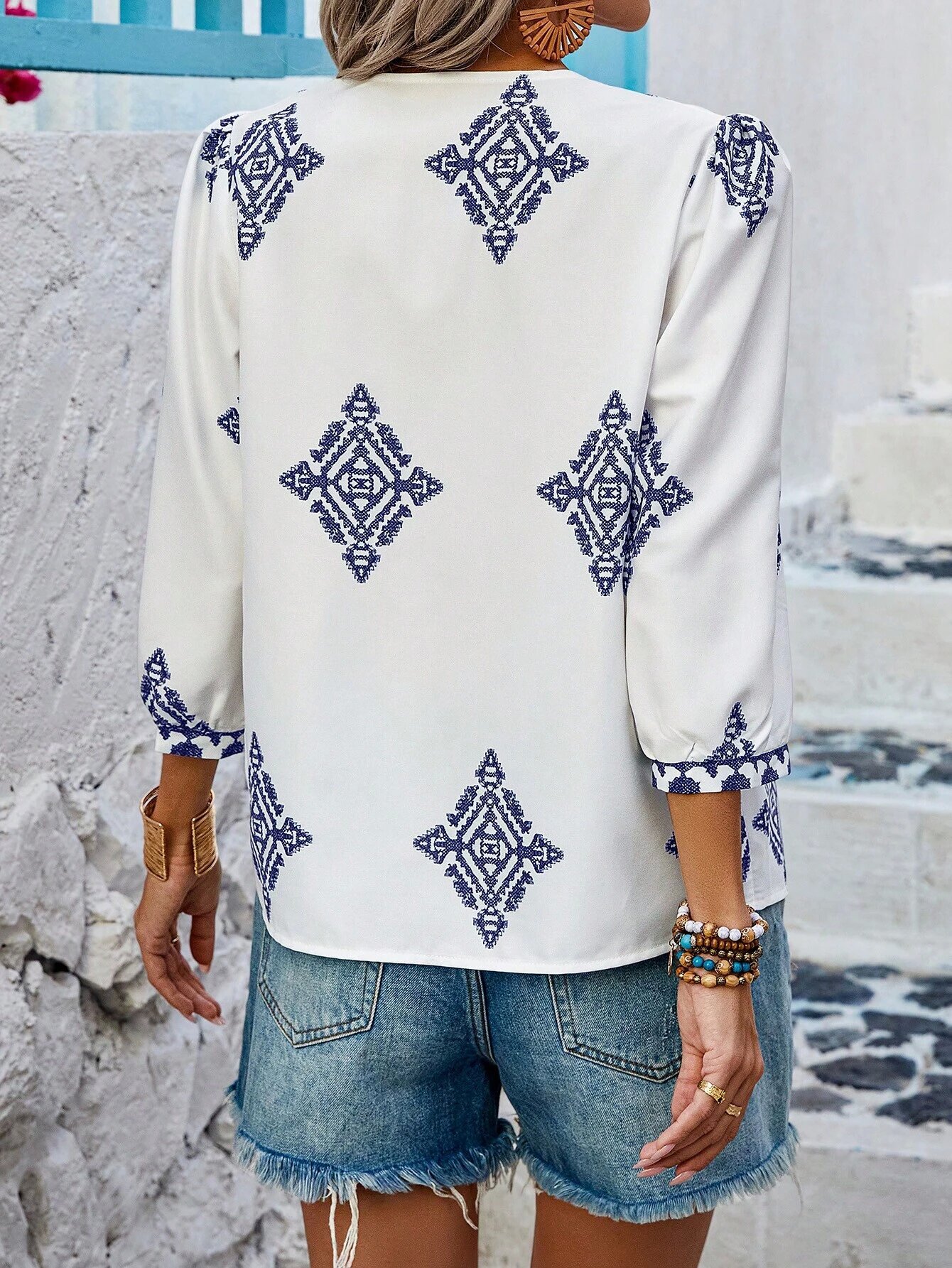 Animal Loose Imitation Denim Print Long Sleeve Crew Neck Sweater