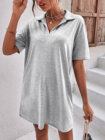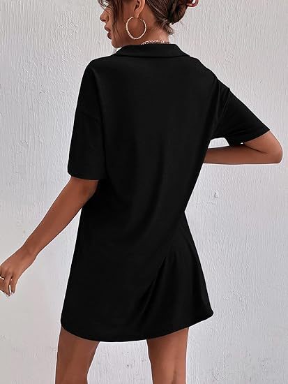 Solid Color Short Sleeve Pullover Lapel Casual Dress