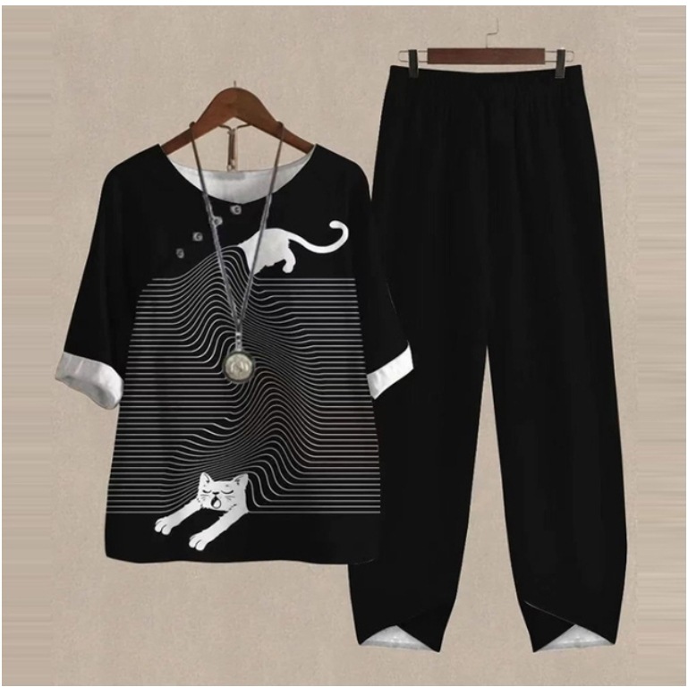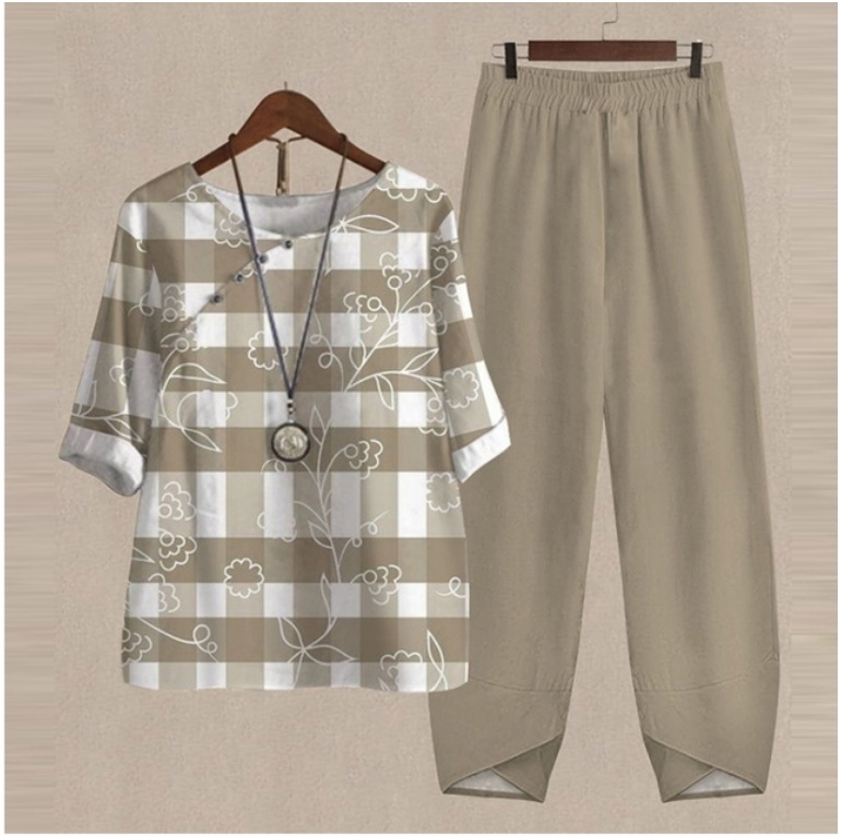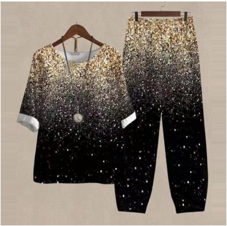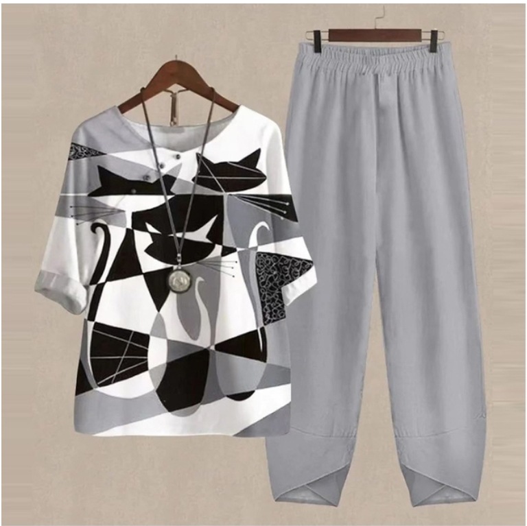 Five-Quarter Sleeve Printed Top Two-Piece Pants