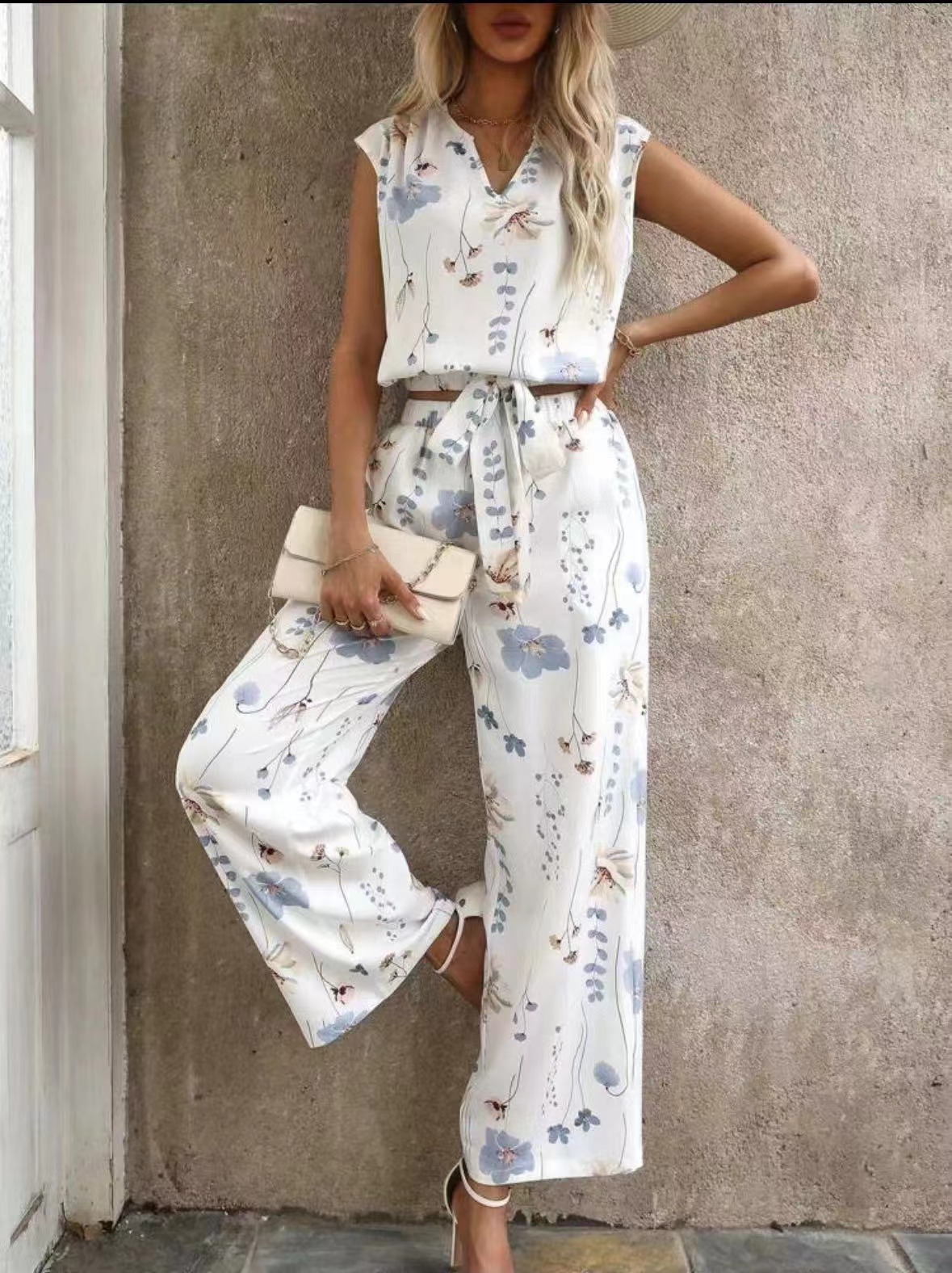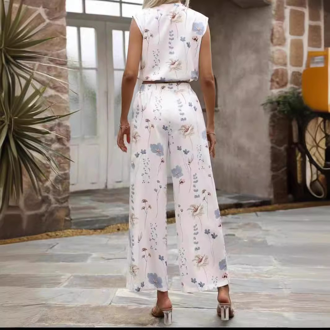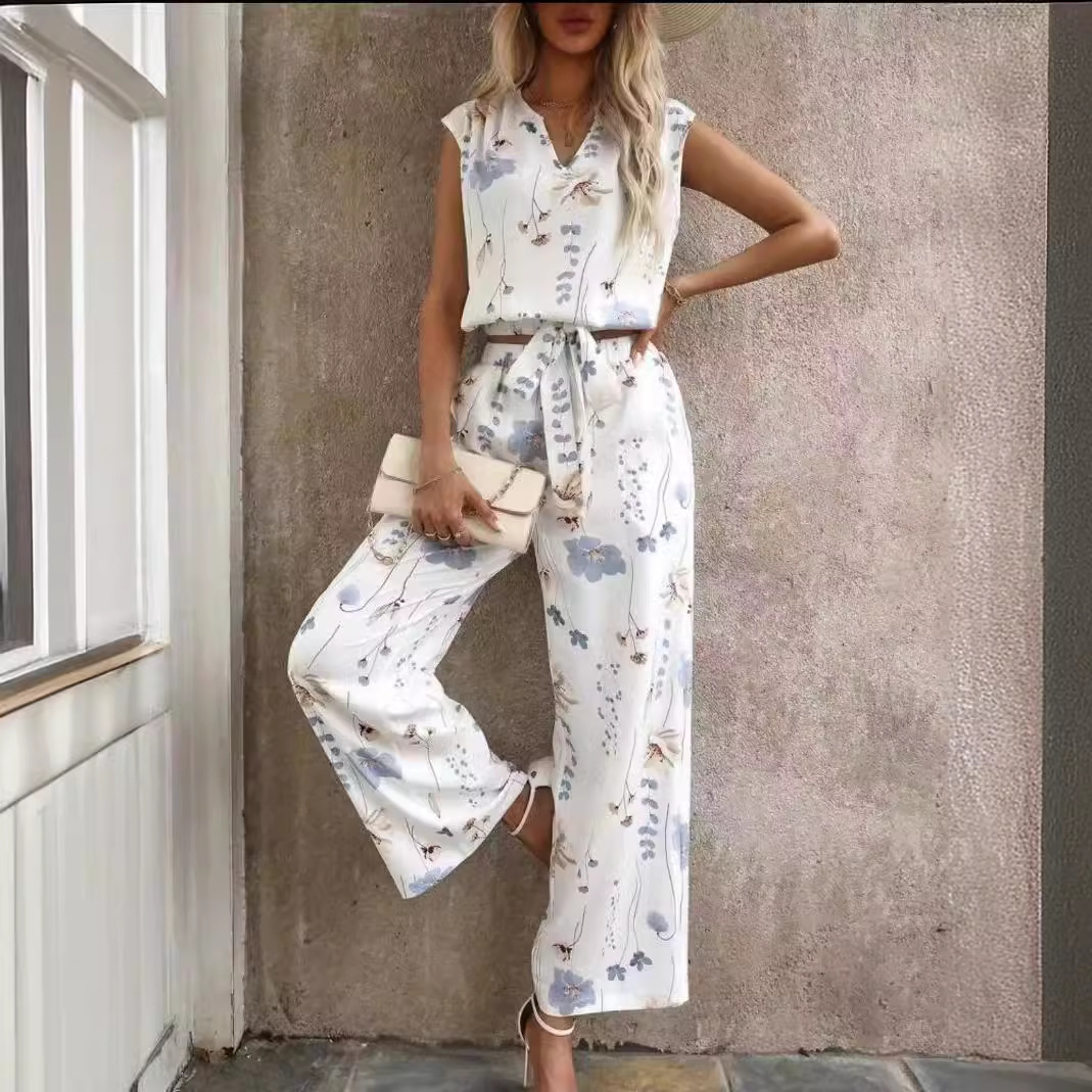 Sleeveless V-neck Vest Pants Fashion Printed Two-Piece Suit