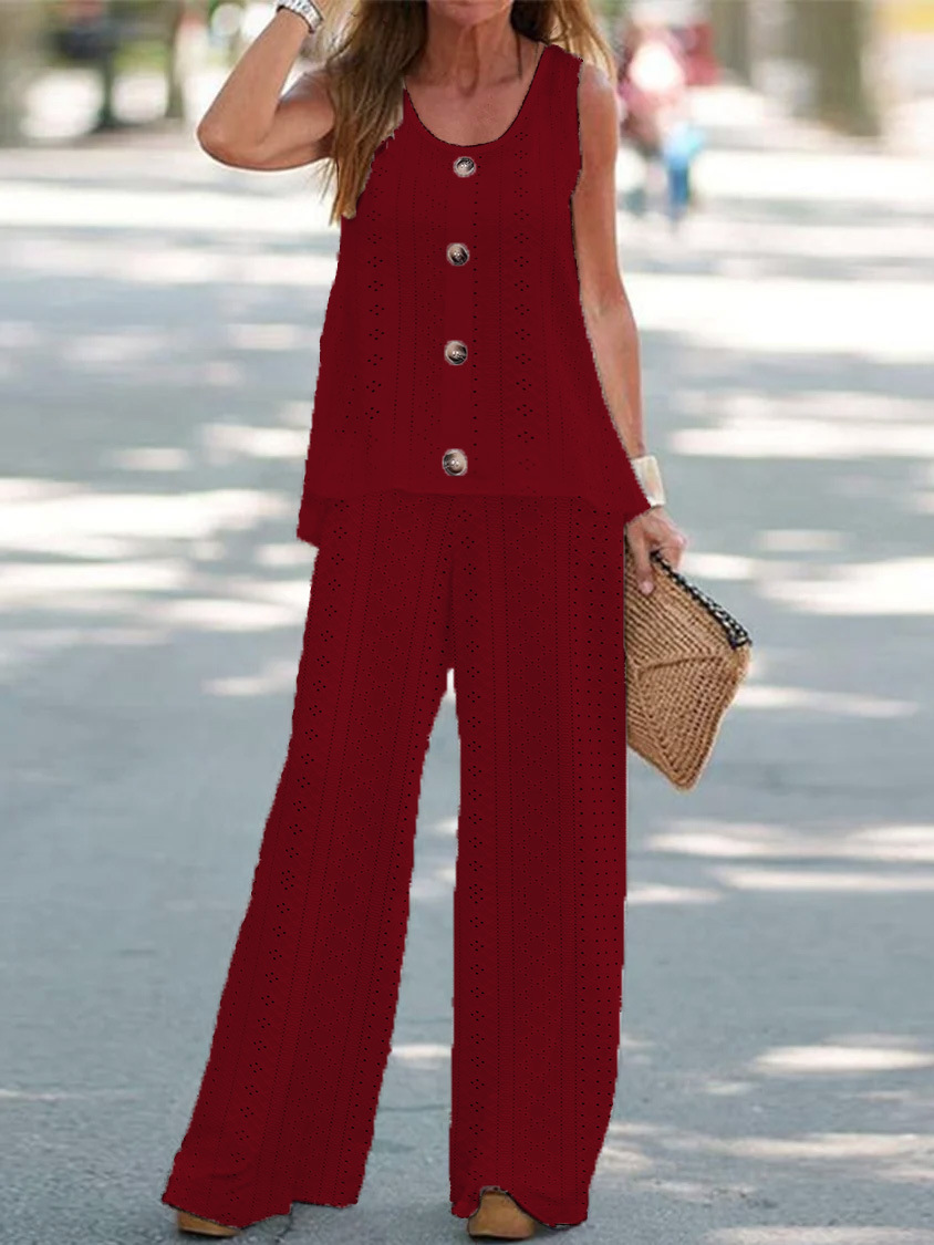 Solid Color Hollow Fluorescent Sleeveless Vest Pants Suit