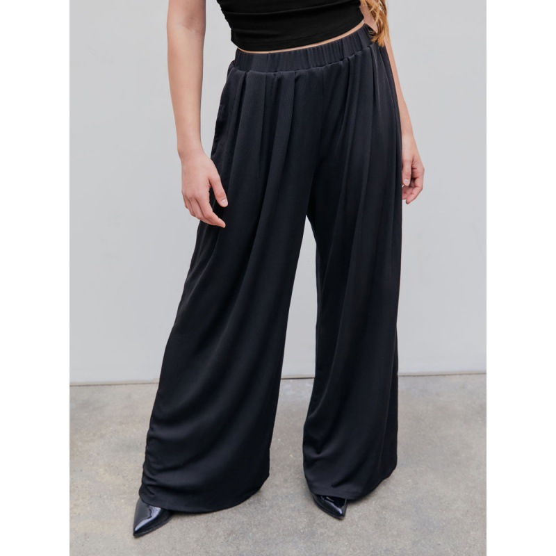 Casual Stretch Elastic Waist Pants Wide-Leg Pants