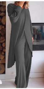 Fashion Casual Cross plus Size Irregular Long Sleeve Suit Wide Leg Pants Two-Piece Set