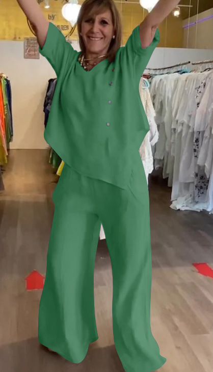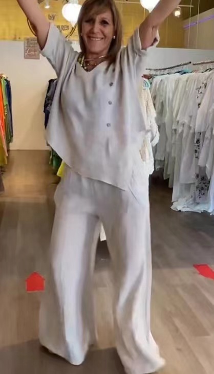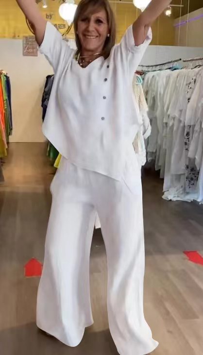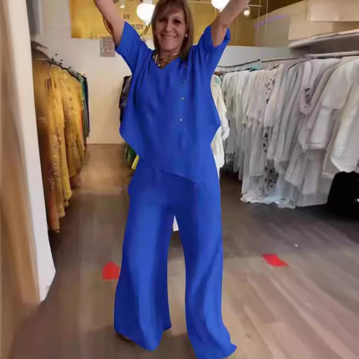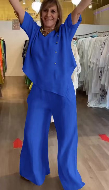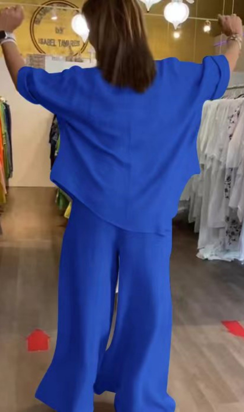 Fashion Casual Cross plus Size Irregular Long Sleeve Suit Wide Leg Pants Two-Piece Set