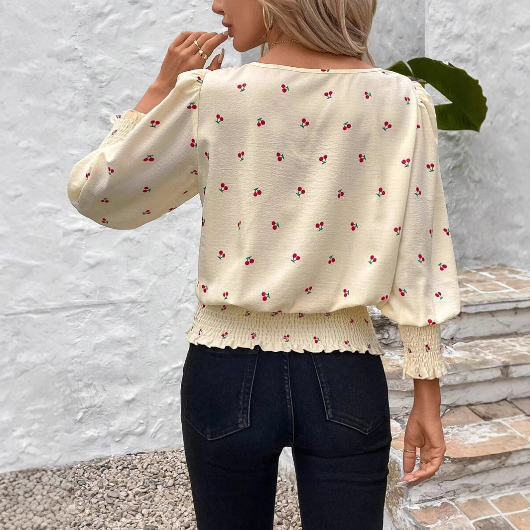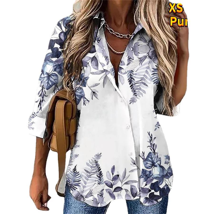 Leaves Printed V-neck Long Sleeve Button Shirt