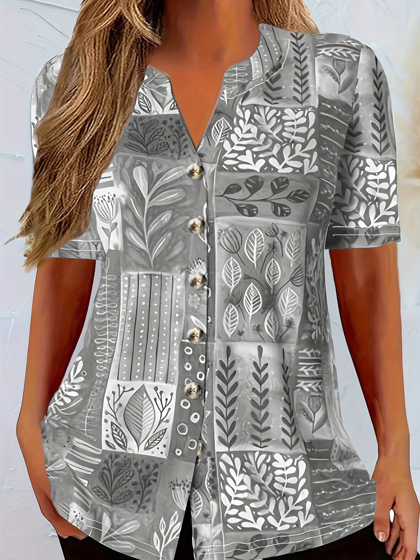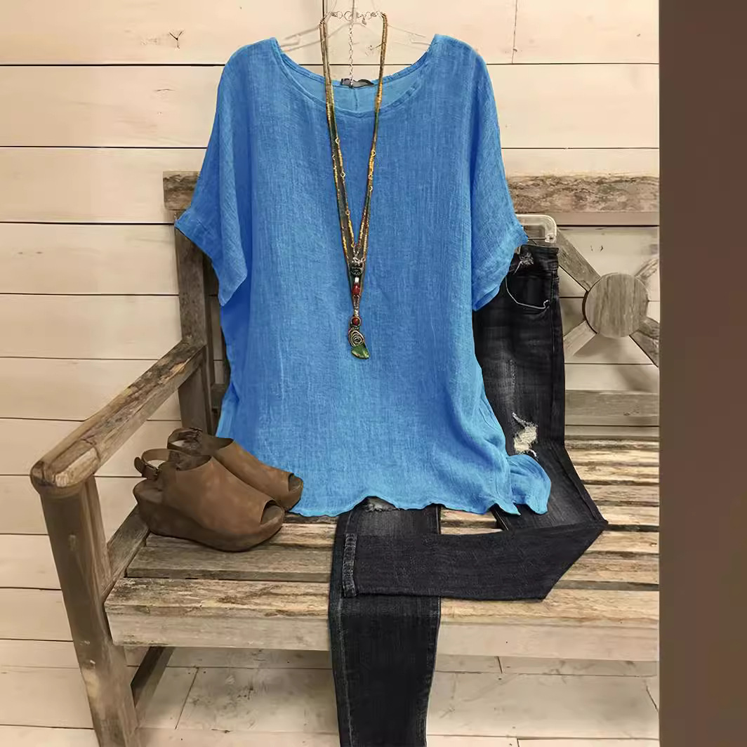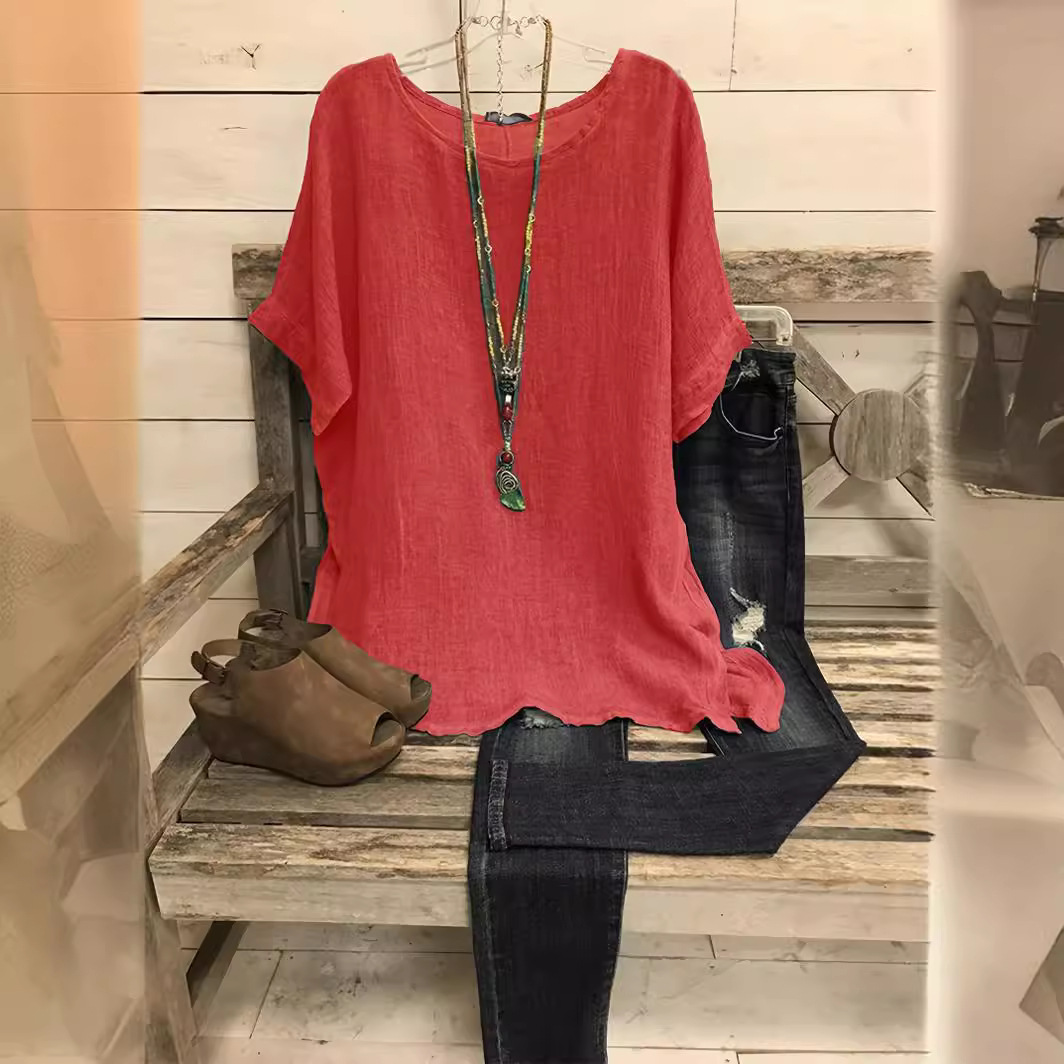 Loose V-neck Cotton and Linen Button Top