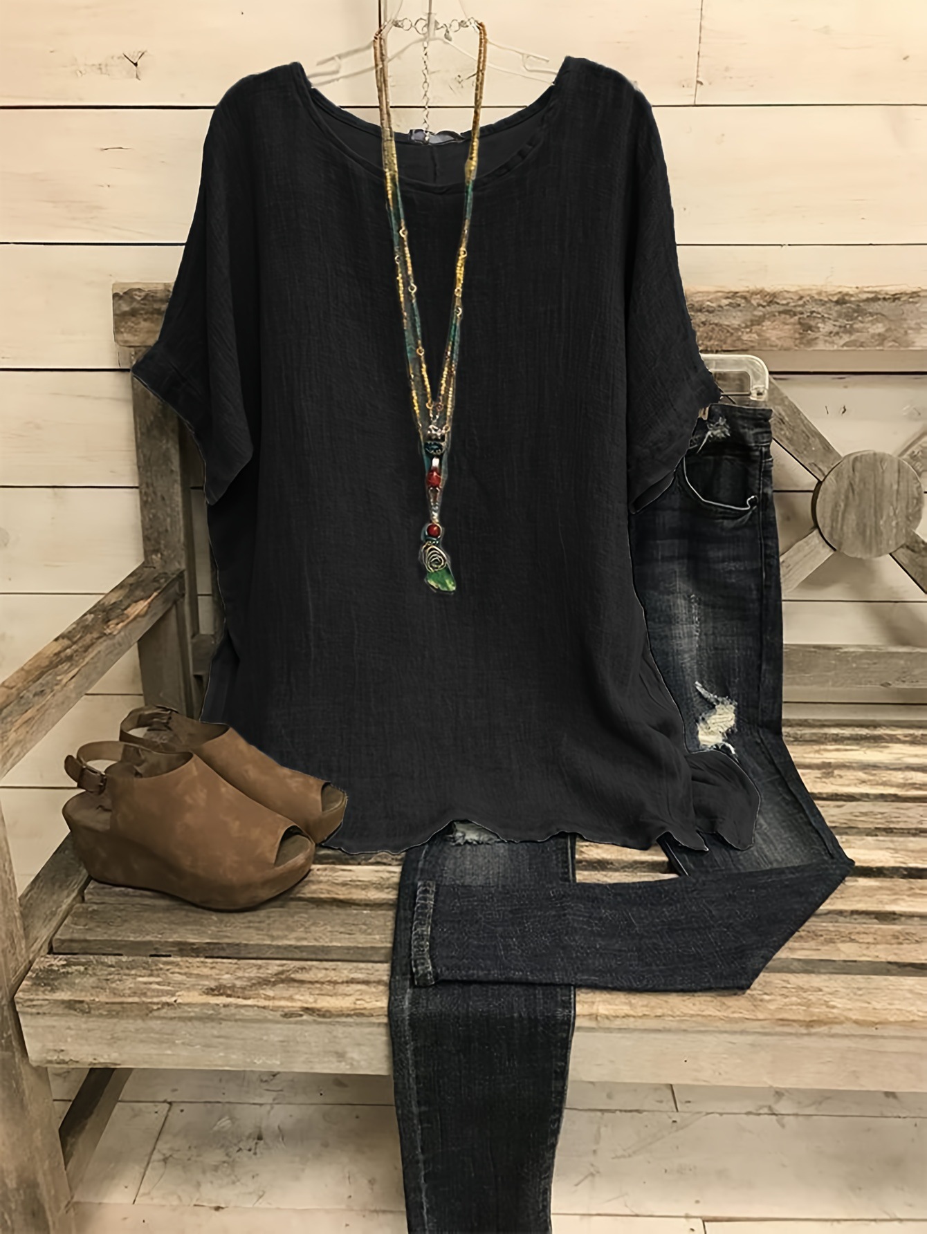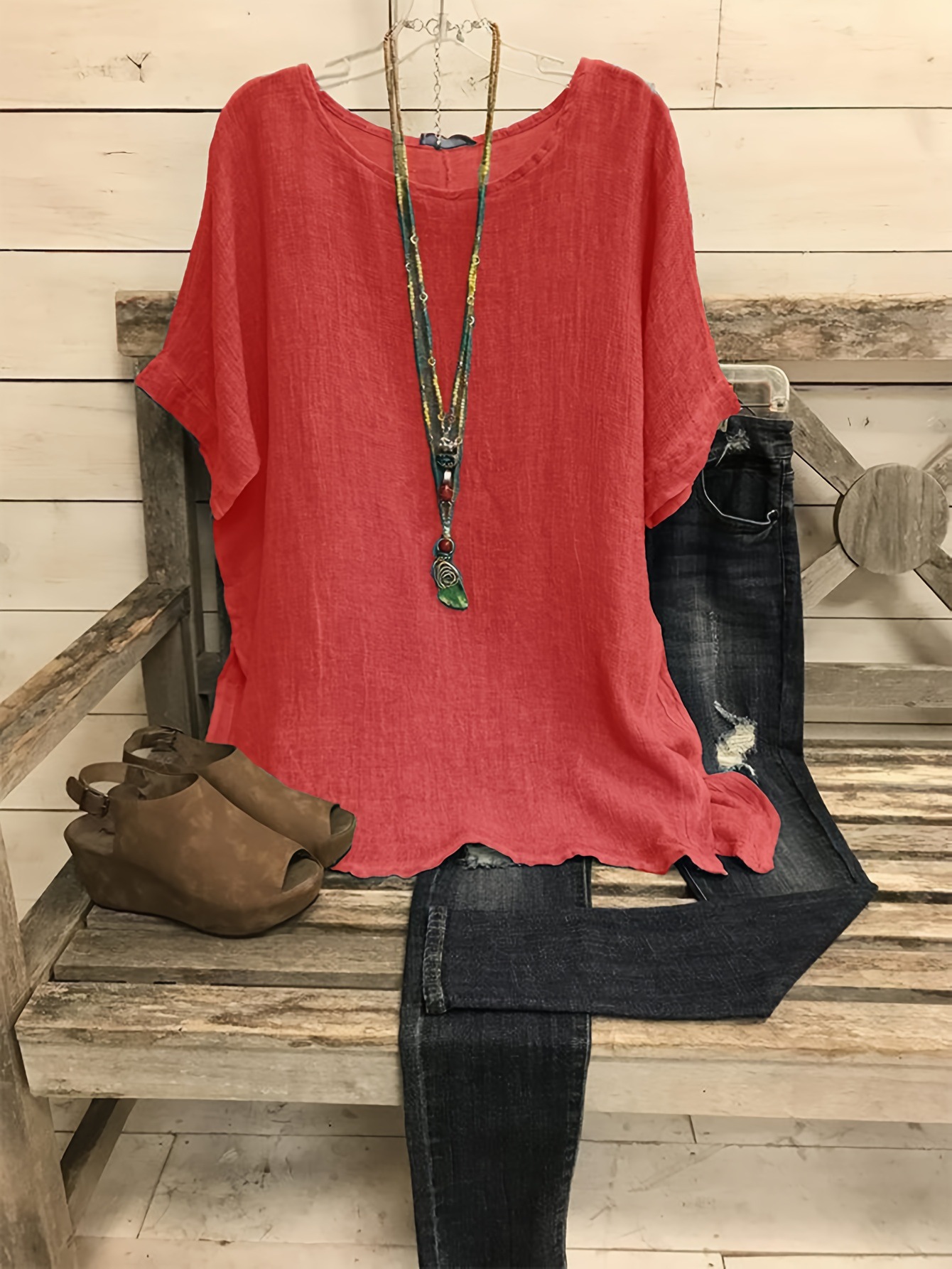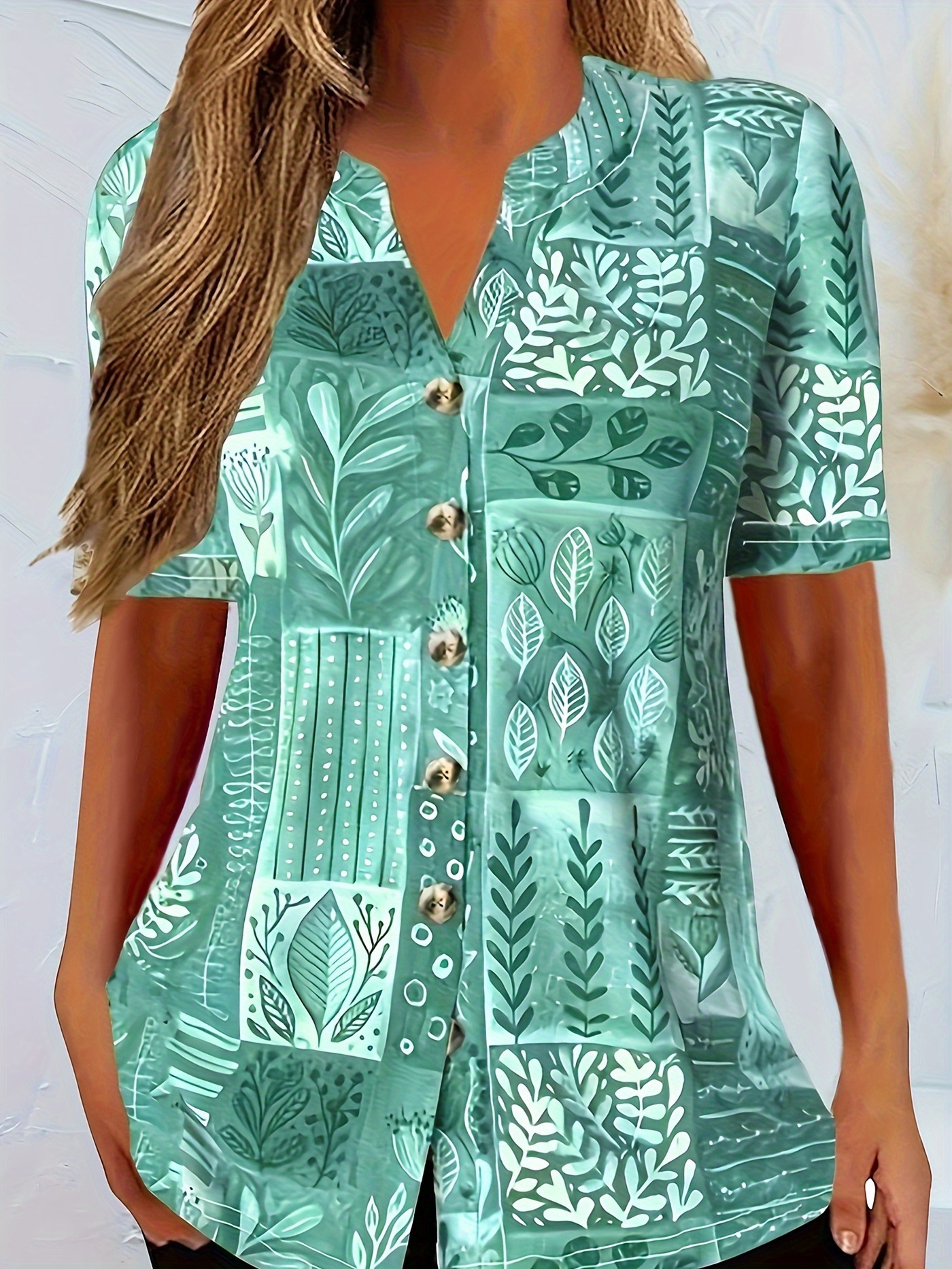Loose V-neck Cotton and Linen Button Top