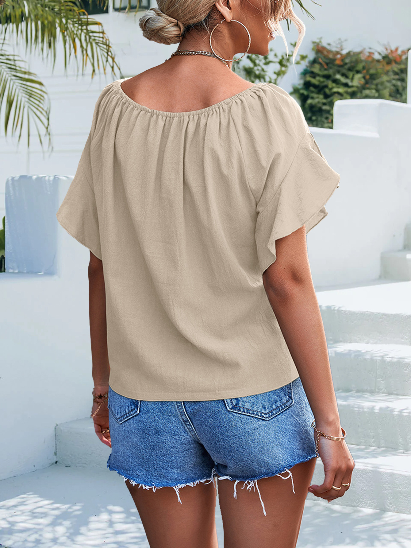 Solid Color Button Fashion Short Sleeve Top