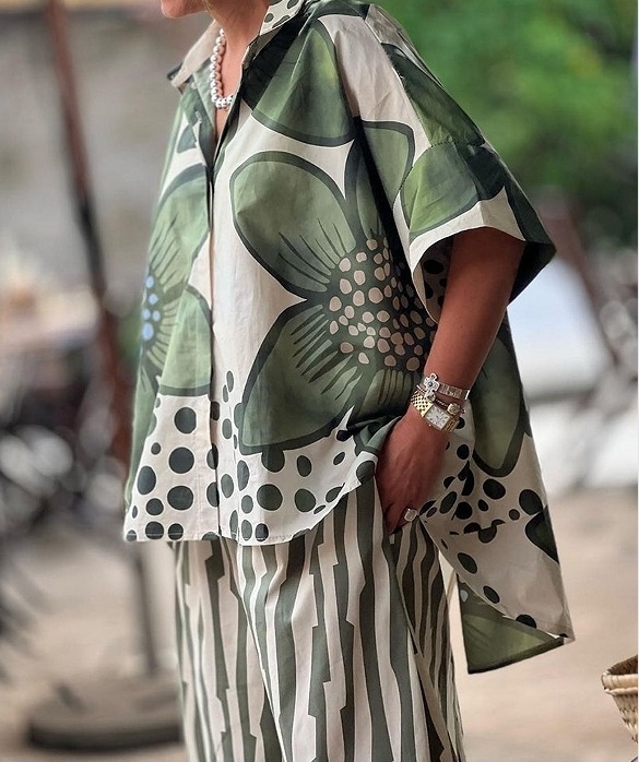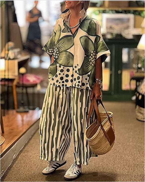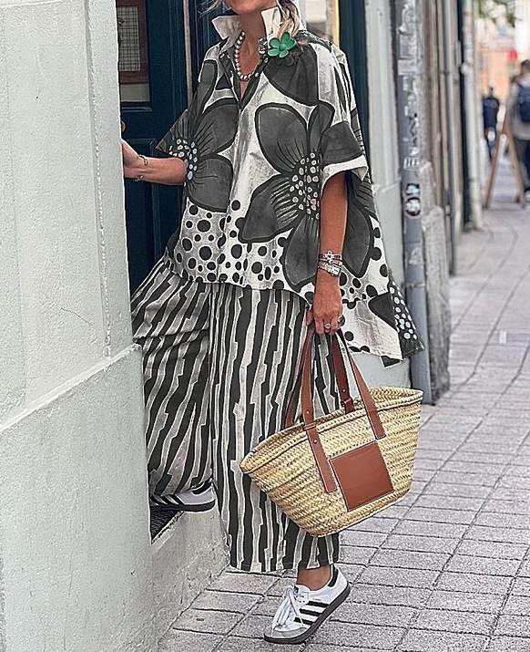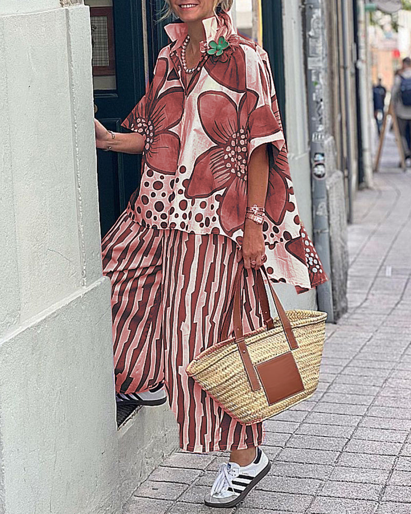 Loose Geometric Print Casual Set
